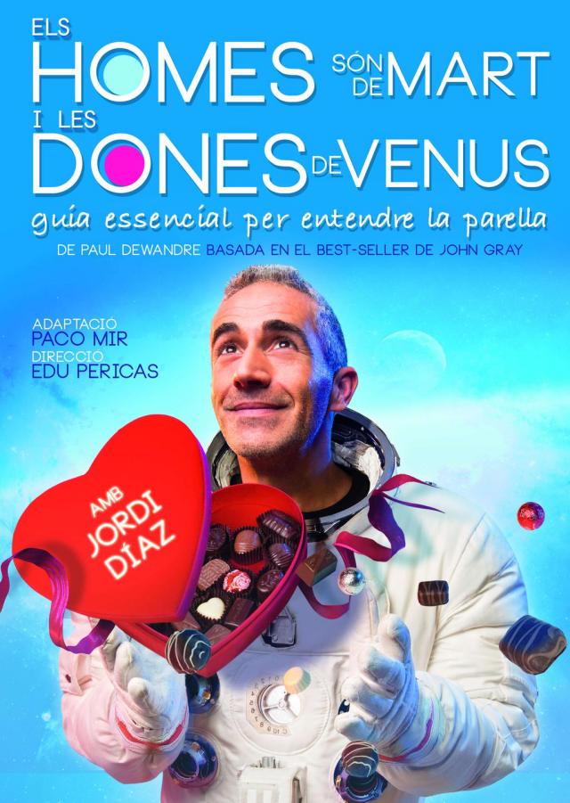 'Els homes són de Mart i les dones de Venus' és l'adaptació que l'escriptor belga Paul Dewandre va fer el 2013 del best-seller homònim que el psicòleg nord-americà John Grey va publicar el 1992 i que ha estat llegit per més de 50 milions de persones a tot el món. El membre de El Tricicle Paco Mir ha fet, al seu torn, una adaptació per al públic català que ha posat en escena el director Edu Pericas, responsable d'altres èxits com 'Tuppersex' o 'Confessions de dones de 30'.