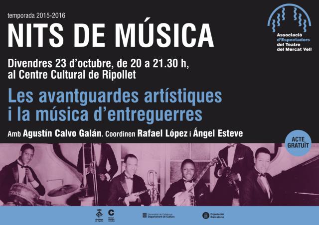 El poeta barceloní Agustín Calvo Galán protagonitzarà la nova sessió de les Nits de Música que tindran lloc divendres, 23 d'octubre, al Centre Cultural. L'acte, que començarà a les vuit del vespre, estarà dedicat a les vanguardies artístiques i a la música d'entreguerres.