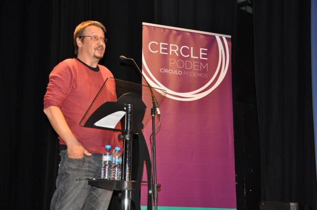 El cap de llista, Xavier Domènech, va ser molt dur amb els darrers anys del Govern d'Artur Mas a Catalunya, que ha protagonitzat les "pitjors retallades de la nostra història", a parer seu. Domènech va recordar que a hores d'ara hi ha una taxa de l'atur del 19% i un atur juvenil del 43%, pel que és necessari "reconstruir els drets socials i acabar amb la creixent desigualtat". Per al cap de llista d'En Comú Podem, el 20 de desembre és "el gran moment del canvi real d'aquesta societat". Xavier Domènech va assenyalar alguns dels punts principals que inclourà el seu programa electoral, com és la creació d'una banca pública o apujar el salari mínim interprofessional, entre d'altres. Per altra banda, també va indicar que és el moment per "acabar amb les portes giratòries dins de la política" i amb el bipartidisme a Espanya. Sobre el procés independentista, Xavier Domènech va defensar la conveniència d'un referèndum, i va assegurar que aquesta consulta rep el suport del partit de Podemos a la resta de l'estat espanyol.