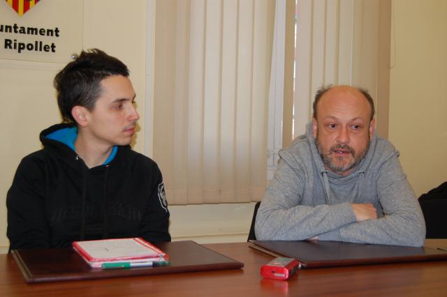 Fotos: Imatge de l'anterior assemblea celebrada al barri de Can Mas, i els regidors Fran Sánchez i David Fontanals, durant la presentació de les dues pròximes assemblees d'aquesta setmana.