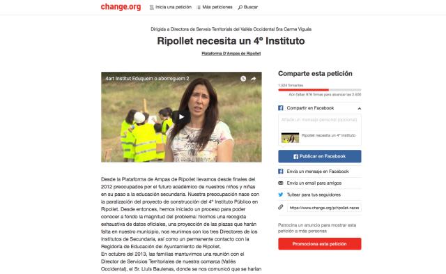 La campanya per al 4t institut de la Plataforma d'AMPA al web Change.org supera les 1.500 firmes