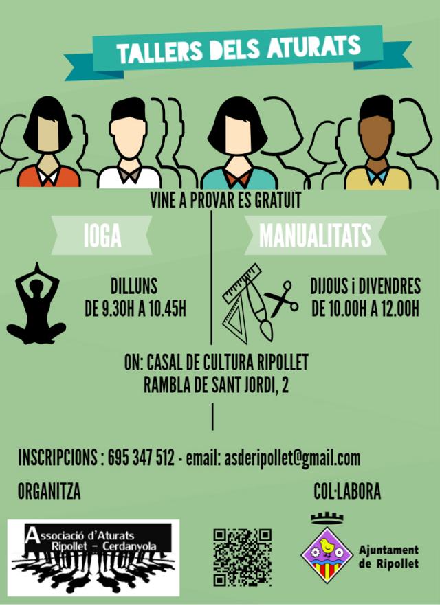 L'Associació d'Aturats Ripollet-Cerdanyola ha posat en marxa dos tallers adreçats a persones en situació d'atur. Es tracta de dos tallers gratuïts, que es duen a terme al Centre Cultural (rambla de Sant Jordi, 2).