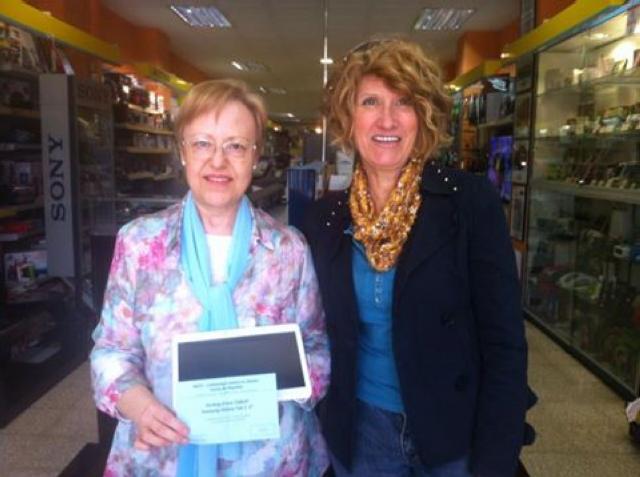 Miracle Alba va ser la guanyadora de la tauleta digital que l'Associació Espanyola Contra el Càncer (AECC) va sortejar entre els col·laboradors de l'entitat en el transcurs del Sant Jordi a la Rambla, diumenge passat, 17 d'abril. La voluntària que va vendre la papereta a Alba, Lola Casajuana, va ser l'encarregada de donar-li la tauleta digital (foto).