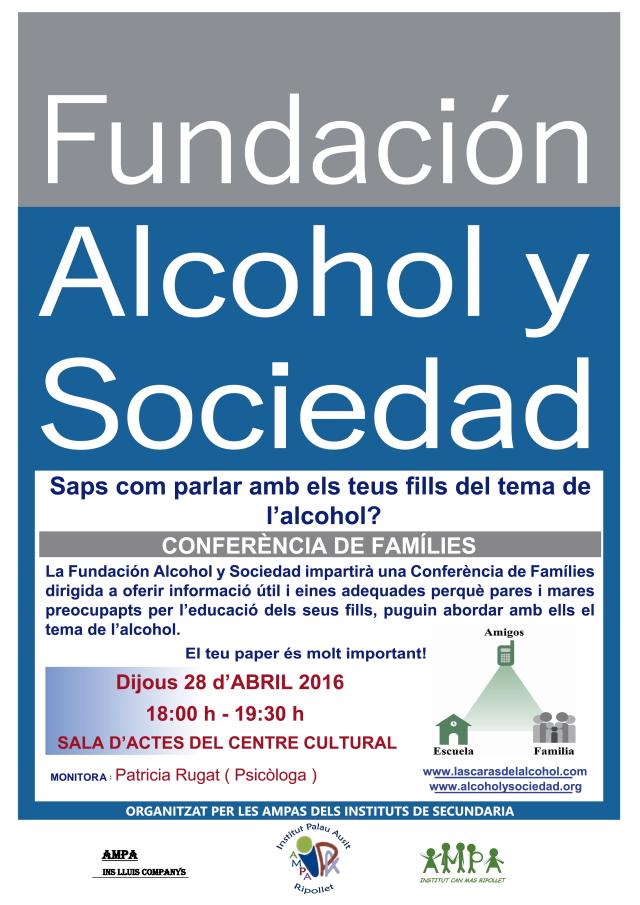 Les AMPA dels centres educatius de secundària han organitzat per a dijous, 28 d'abril, una xerrada sobre com prevenir el consum d'alcohol en menors. L'acte anirà a càrrec de la psicòloga Patricia Rugat, de la Fundación Alcohol y Sociedad. L'activitat tindrà lloc al Centre Cultural de sis a dos quarts de vuit del vespre.