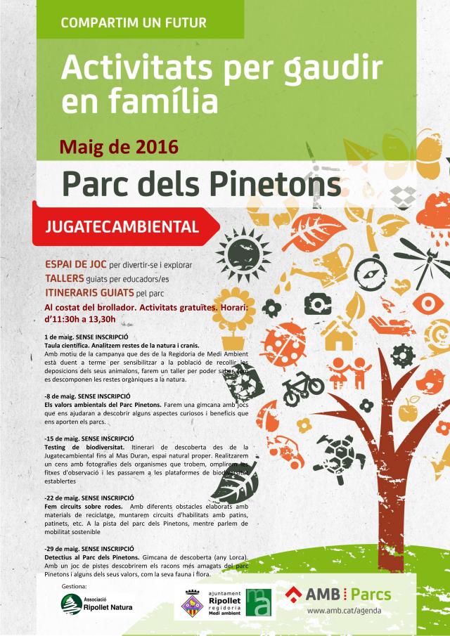 Totes les sessions de la Jugatecambiental són gratuïtes i tenen lloc tots els diumenges al brollador del parc dels Pinetons, a partir de les 11.30 h fins a les 13.30 hores. No cal inscripció prèvia per a participar-hi. La programació de la Jugatecambiental es pot consultar al Facebook de la Casa Natura de Ripollet, i es pot demanar més informació al correu casadenatura@gmail.com.