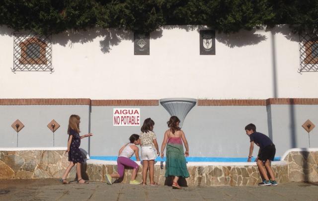 Per garantir la seguretat d'aquesta instal·lació ornamental s'ha connectat una bomba depuradora amb un prefiltre de circuit tancat i s'ha col·locat un nou cartell que recorda que es tracta d'una font d'aigua no potable.
