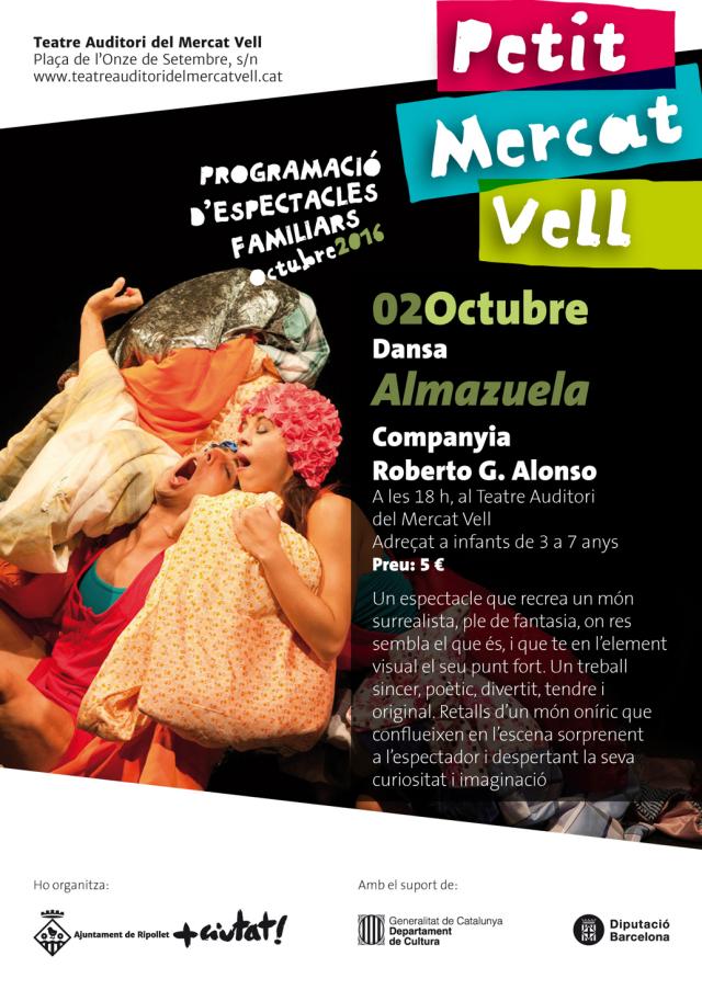 El tret de sortida el donarà l'espectacle de dansa 'Almazuela', de Robert G. Alonso. Es tracta d'un espectacle adreçat a infants de 2 a 7 anys que recrea un món surrealista, ple de fantasia, on res sembla el que és, i que té en l'element visual el seu punt fort. Serà diumenge, 2 d'octubre, a les 18 hores.