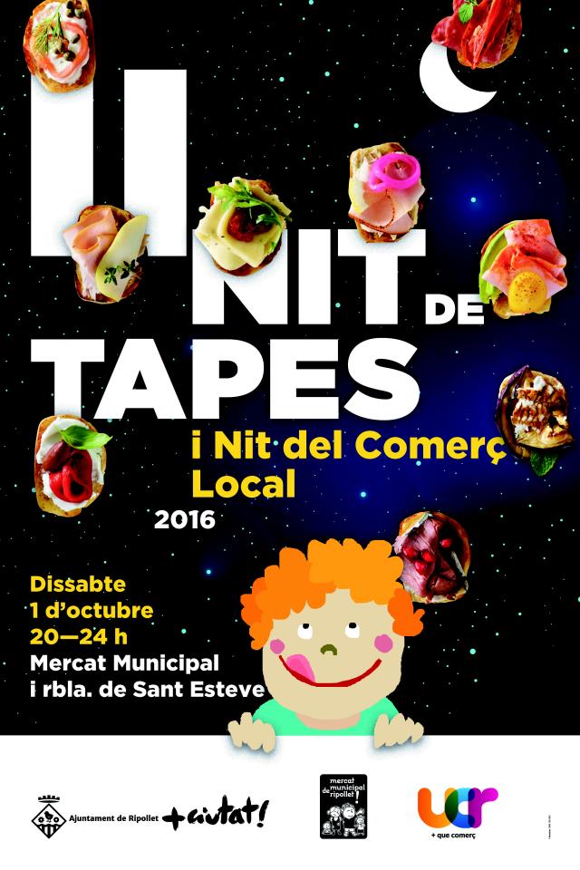 La 2a Nit de Tapes i la Nit del Comerç es durà a terme des de les 20 hores fins a la mitjanit de dissabte. És una activitat organitzada per la UCR i el Mercat Municipal, amb la col·laboració de l'Ajuntament de Ripollet.