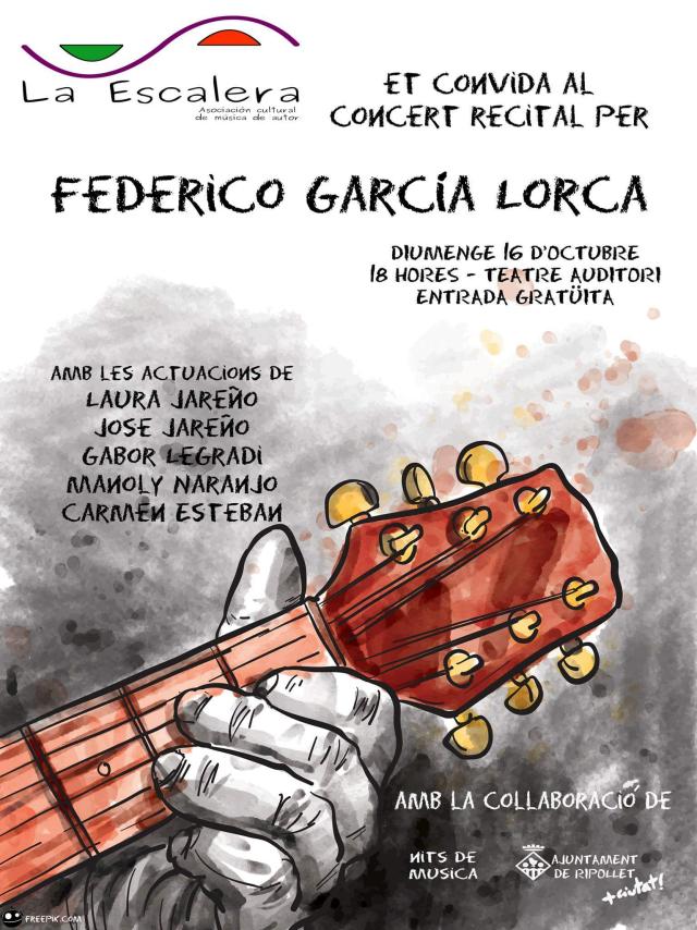 Per altra banda, aquest dissabte, el Teatre Auditori del Mercat Vell viurà un altre homenatge. En aquesta ocasió, anirà a càrrec de l'Associació Alegrías del Sur i la Peña Flamenca La Macarena que oferiran un festival flamenc de ball i cant. A partir de les 19.30 hores, pujaran a l'escenari diversos artistes de diferents estils, per retre homenatge a García Lorca.