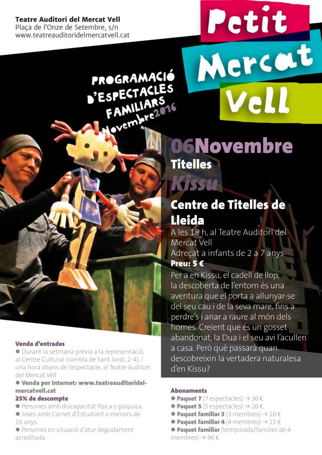 Després de mesos girant per molts municipis per fi arriba al Teatre Auditori del Mercat Vell l'espectacle 'Kissu', que s'estrenarà a Ripollet diumenge 6 de novembre a les 18 hores. Un espectacle de titelles del Centre de Titelles de Lleida que està adreçat a infants de 2 a 7 anys.