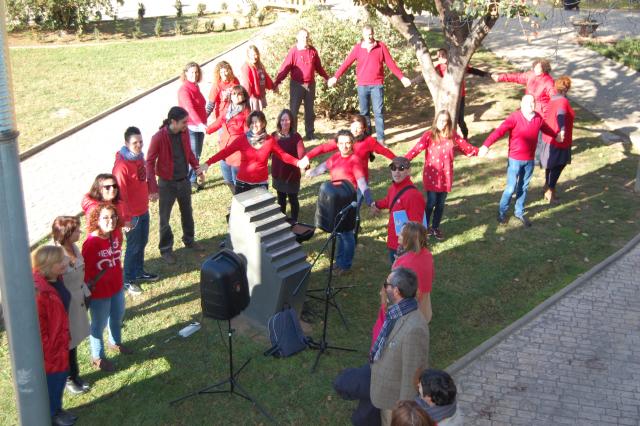 Llaços vermells humans per commemorar el Dia Mundial de la Sida