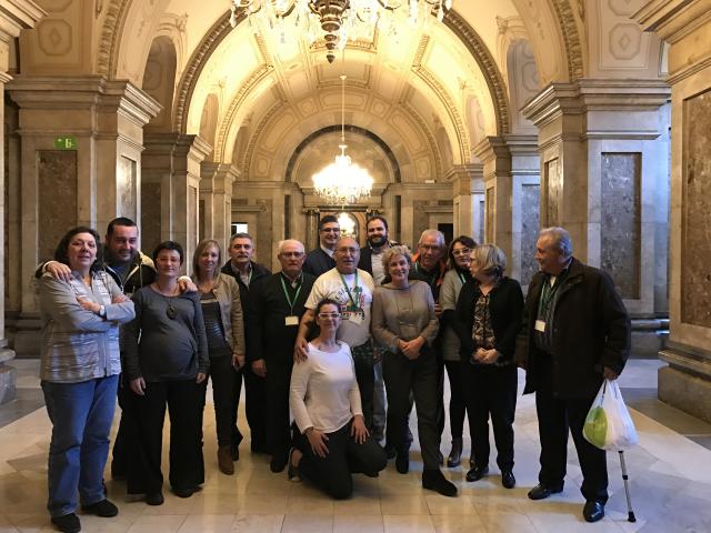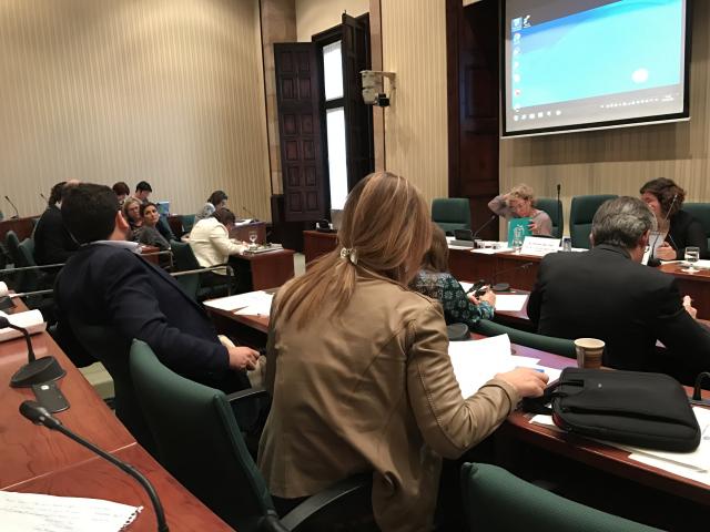 Fotos: Imatge del debat a la Comissió i foto de família de representants de Ripollet amb diputats de la Comissió.