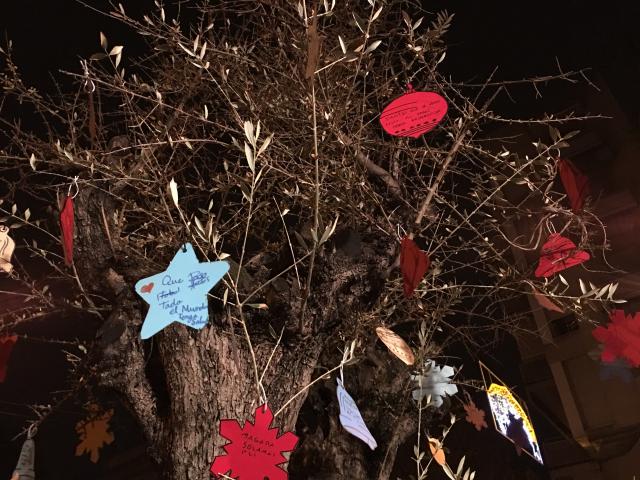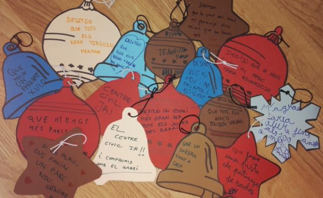 Més d'un centenar de desitjos es van penjar a l'olivera del barri de Tiana-Pont Vell en un acte que va organitzar el Centre d'Esplai La Gresca el 2 de gener, en el transcurs del lliurament de cartes als Reis Mags. Amenitzats per una xocolatada, desenes de persones van donar la seva opinió sobre què caldria fer per millorar el barri.