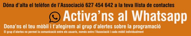 L'Associació d'Espectadors del Teatre del Mercat Vell ha creat un grup de difusió per poder enviar les seves informacions a través de Whatsapp. Fins ara, l'entitat enviava habitualment informació de les seves activitats per correu electrònic. És per això que estan fent una campanya de difusió per tal que les persones interessades els facilitin el seu número de telèfon mòbil i donin d'alta el telèfon de l'Associació 627 454 642 a la seva llista de contactes.