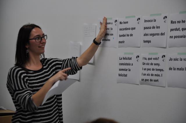 Una vintena de persones trien poemes de Pere Quart per col·locar a la 'seva' plaça