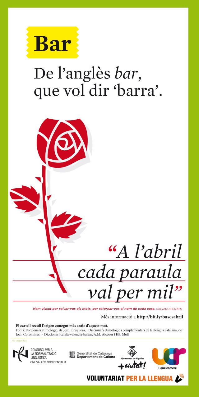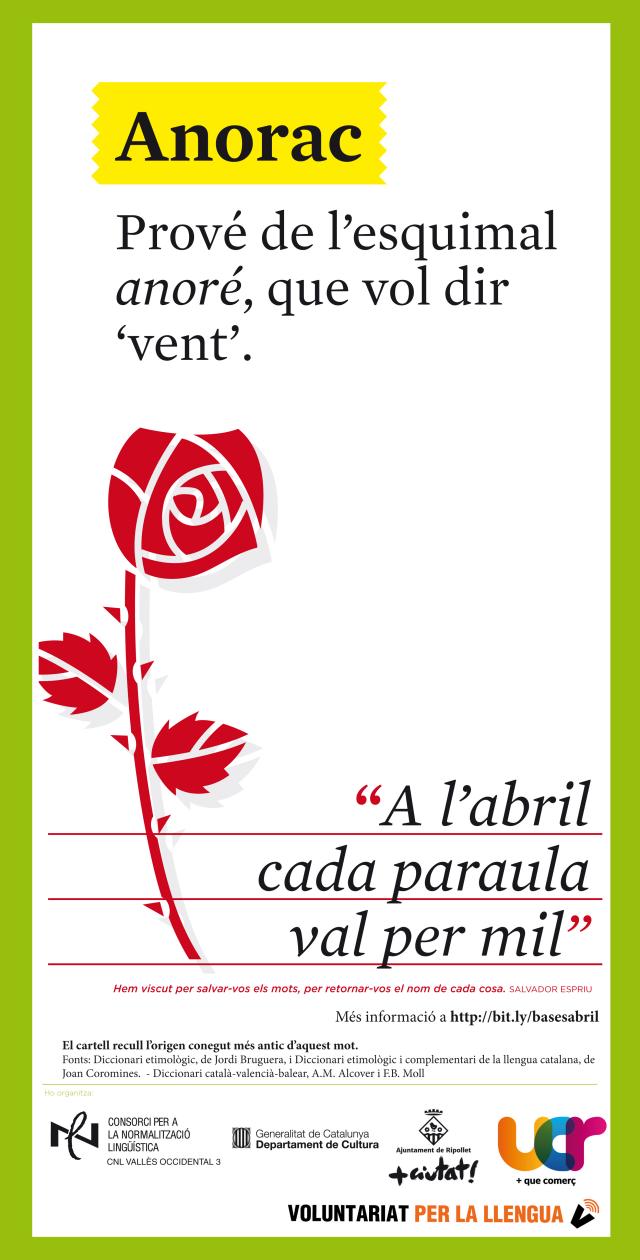 El 20 d'abril finalitza el termini per concursar en el joc lingüístic A l'abril cada paraula val per mil, que porta la llengua catalana als aparadors dels comerços de Ripollet. Les botigues adherides exhibeixen un cartell al seu aparador amb una paraula relacionada amb el món del comerç. Aquest cartell inclou el seu origen i significat.