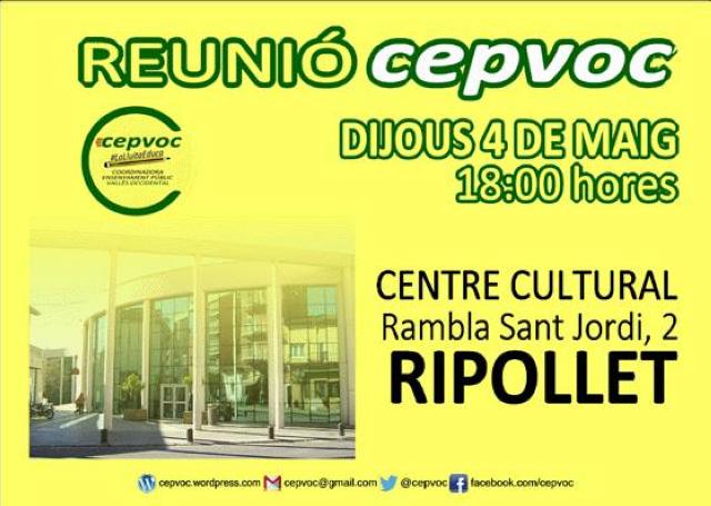 Ripollet acollirà el 4 de maig la reunió mensual de la Coordinadora d'Ensenyament Públic del Vallès Occidental. L'acte tindrà lloc al Centre Cultural a partir de les sis de la tarda. En aquesta trobada s'acordaran els detalls i el disseny d'una campanya per a la baixada de ràtios i el manteniment de línies i escoles a la pública de la qual es va parlar en la reunió que l'entitat va celebrar a l'abril a Cerdanyola del Vallès.