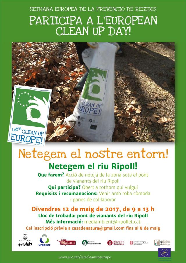 El 12 de maig, Ripollet se suma en la jornada Clean Up Day. Es tracta d'una iniciativa emmarcada dins la Setmana Europea de la Prevenció de Residus, que sota el lema genèric de Let's Clean Up Europe pretén conscienciar sobre la quantitat d'escombraries abocades a la natura, en zones verdes, platges i rius, com és el cas del riu Ripoll.