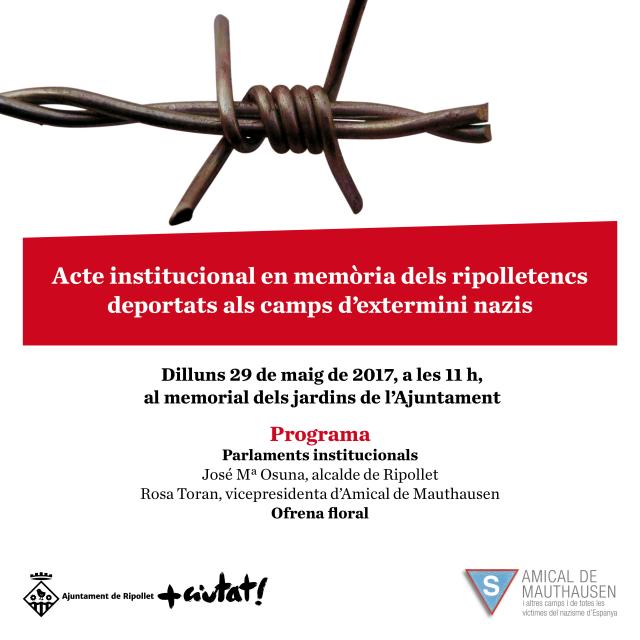 Els cincs ripolletencs assassinats entre els anys 1941 i 1942 als camps d'extermini nazis van ser homenatjats en un acte, organizat per l'Ajuntament de Ripollet, amb la participació d'entitats i de familiars de les víctimes. La commemoració va comptar amb la participació de la visepresidenta d'Amical de Mauthausen, Rosa Toran, qui va destacar la necessitat de treure les víctimes de l'anonimat.