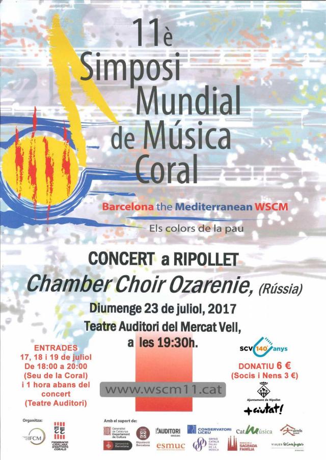 El Teatre Auditori del Mercat Vell acollirà el 23 de juliol l'actuació de la coral russa Chamber Choir Ozarenie en el marc de l'onzena edició del Simposi Mundial Coralque, per primer cop, se celebra a Catalunya, concretament a Barcelona, i que reunirà unes 2.000 persones vingudes dels cinc continents. Es tracta del festival més important del món de cant coral.