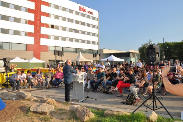 Els parlaments de l'acte d'inauguració van comptar amb les intervencions de Fran Sànchez, regidor de Polítiques LGTBI; l'adjunt al Síndic de Greuges, Jaume Saura; Sergi Sanz, president de la Comissió d'Igualtat; Eugeni Rodríguez, president de l'Observatori contra l'Homofòbia; Elena Longares, de la Comissió Unitària del 28 de juny; Joaquim Roqueta, president de la plataforma LGTBICat; Boti García, representant de la Federació Estatal LGTBI, Armand de Fluvià, funtador del Melch, la FAGG i el Casal Lambda i l'alcaldessa accidental, Pilar Castillejo. Tots ells van coincidir que tot i que s'ha avançat molt en els darrers 40 anys, encara queda molt a fer.