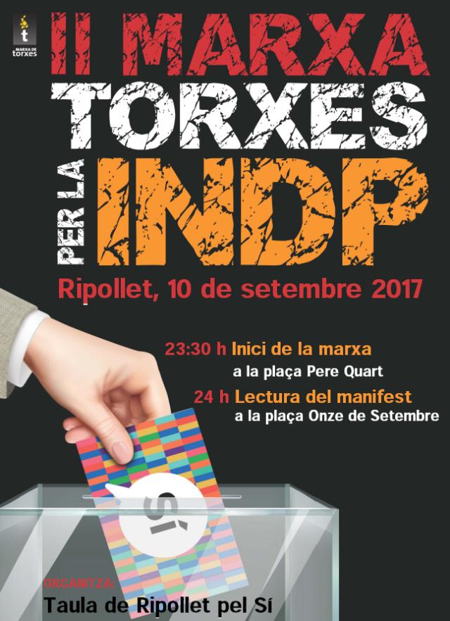 La Taula de Ripollet pel Sí convoca una marxa de torxes la vigília de l'Onze de Setembre