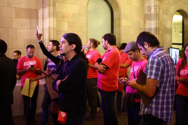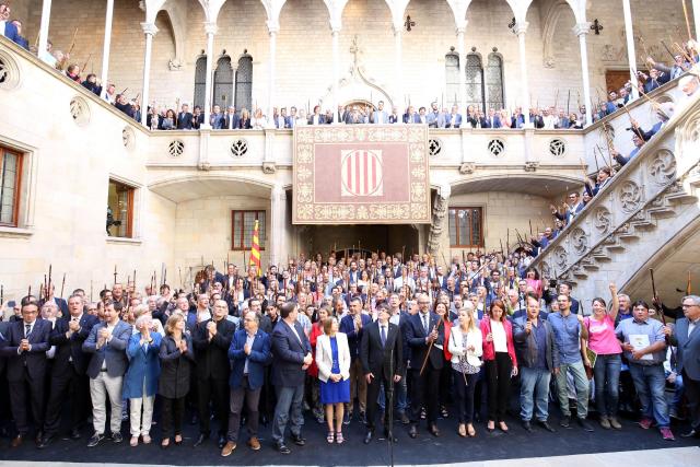 L'alcaldessa de Barcelona, Ada Colau, en la seva compareixença al pati de l'Ajuntament, va denunciar que "per expressar el seu compromís per decidir el futur dels catalans, els alcaldes i alcaldesses hem estat intimidats" i va afirmar que "el futur del nostre país el construïm entre tots els alcaldes, i que som el 80% de la societat catalana els que reivindiquem el dret a decidir lliurement i democràticament a favor del referèndum".