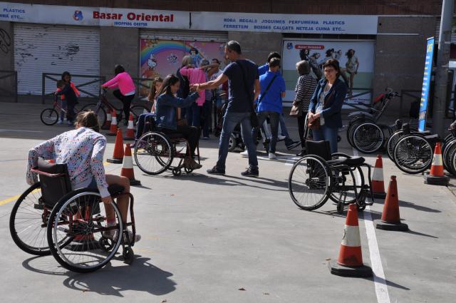 De fet, a les 12 i a les 13 h, AFIS va organitzar per la rambla de Sant Esteve un circuit en cadira de rodes perquè es prengués consciència dels obstacles que les persones que han de desplaçar-se en cadira de rodes es troben en el seu quefer diari. En el segon d'aquests circuits va participar el regidor de Mobilitat, Fran Sánchez.