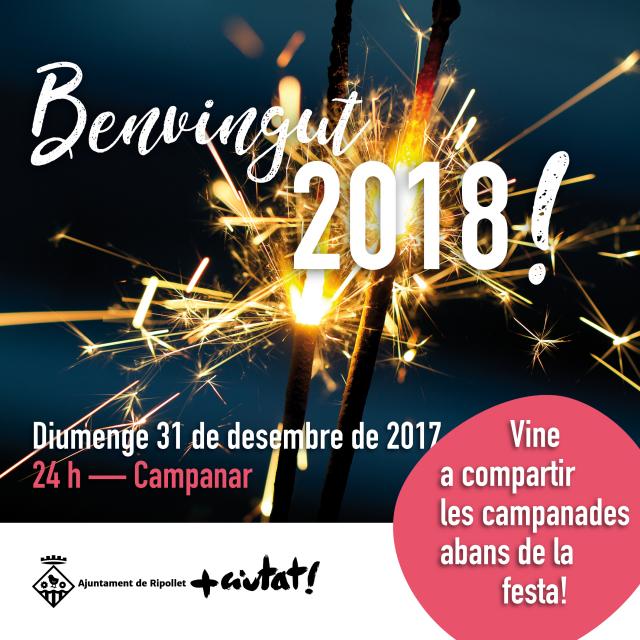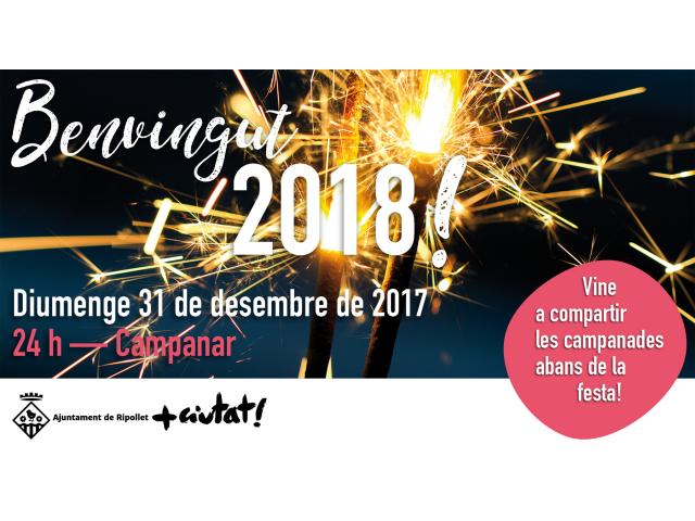 L'Ajuntament convida tots els veïns i veïnes de Ripollet a donar la benvinguda al 2018 tots plegats, a la placeta del campanar. Tots els interessats poden portar el seu raïm i menjar-se'l mentre sonen les campanes de la parròquia de Sant Esteve. La zona, un dels indrets més característics del nucli antic del municipi, estarà habilitada per acollir tots els assitents.