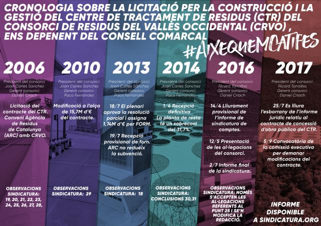 En una roda de premsa organitzada el dia 8 de febrer i en la posterior nota de premsa, la coalició explica que l'informe de la Sindicatura de Comptes 14/2016 exposa fins a 14 observacions que fan referència al contracte de construcció i gestió del CTR, ens que depèn del Consell Comarcal del Vallès Occidental. Aquestes irregularitats tindrien com a objectiu afavorir a una empresa concreta en l'adjudicació de l'obra i la posterior gestió del centre.