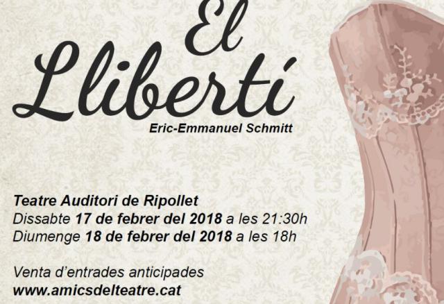 Aquest cap de setmana, Amics del Teatre estrena el muntatge "El Llibertí", d'Eric-Emmanuel Schmit, dirigit per Judith López i Jordi Sanz. Les funcions seran dissabte 17, a les 21.30 h, i diumenge 18, a les 18 h, al Teatre Auditori del Mercat Vell.