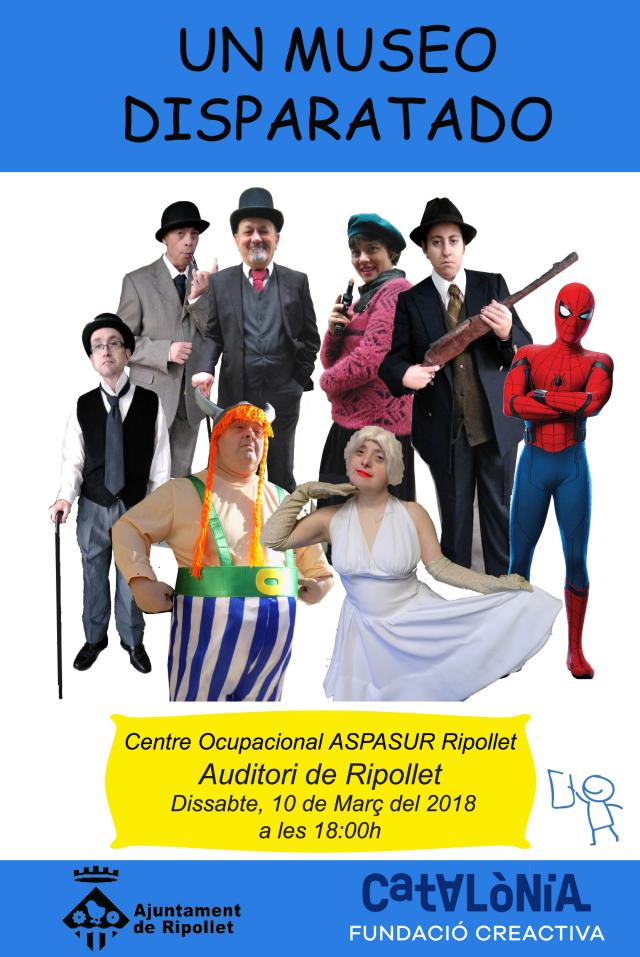 Aquest dissabte, dia 10, el centre ocupacional d'inserció Aspasur estrenarà a les 18 h al Teatre Auditori del Mercat Vell l'obra "Un museo disparatado". El muntatge teatral proposa una visita guiada per la història del cinema amb una mica de suspens, fantasia, comèdia i emoció.
