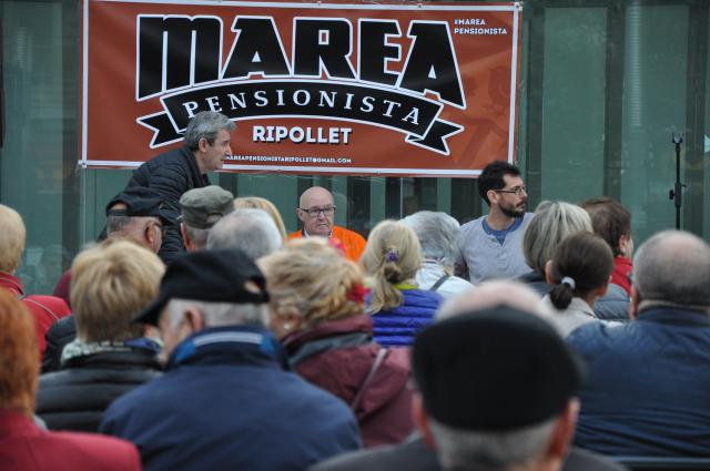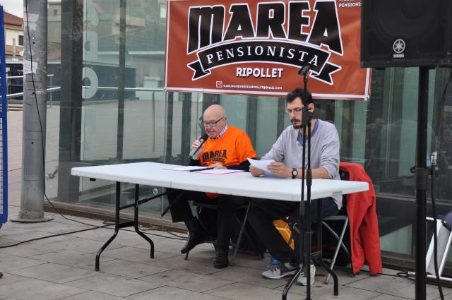 Sergio Linares, el membre més jove de la Marea Pensionista Ripollet, ha estat el responsable de llegir el comunicat de la Coordinadora estatal per la defensa del sistema públic de pensions. Ha començat qualificant de "vergonyoses i insuficients les mesures estrella relacionades amb el projecte pressupostari en relació a l'increment de fins al 3% per a les pensions més baixes i les suposades millores per a les pensions de viudetat". Davant l'aprovació del projecte pressupostari, el 27 de març, Linares, ha afirmat que "el projecte polític i social del govern de M. Rajoy i els socis que el sustenten està completament esgotat" i que les respostes del govern "no corresponen, de cap manera, a les nostres reivindicacions".