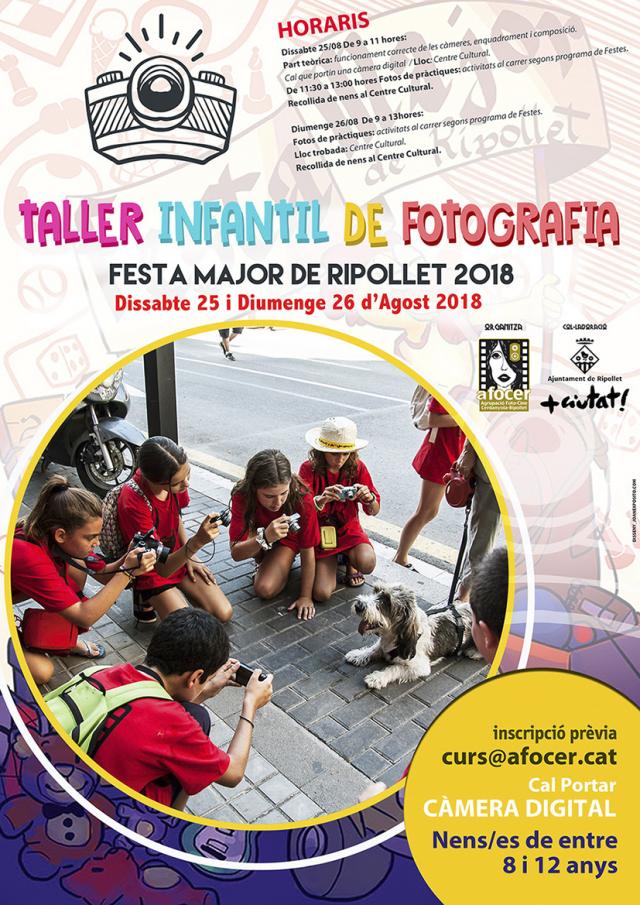 L'Agrupació de Foto-Cine Cerdanyola-Ripollet (AFOCER) organitza un any més el taller de fotografia infantil el cap de setmana de la Festa Major. L'activitat , adreçada a infants entre 8 i 12 anys, s'impartirà els matins del cap de setmana al Centre Cultural. Per poder participar cal tenir càmera i inscriure's prèviament al correu curs@afocer.cat