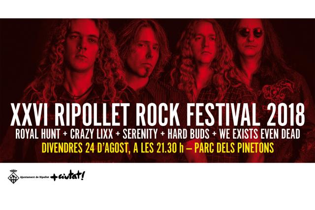 La 26a edició del Ripollet Rock Festival 2018 tindrà lloc el divendres, 24 d'agost, al parc dels Pinetons a les 22 h i l'obertura de portes es farà a les 21 h.