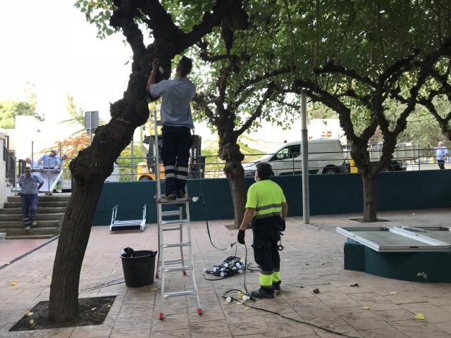 - La Brigada Municipal acabant d'acondicionar l'espai per a la seva inaguració aquest dissabte 15 de setembre.