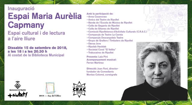 L'espectacle inaugural s'oferirà al públic que prèviament hagi recollit la seva entrada gratuïta al Centre Cultural a les 18 i a les 20.30 h. Durant la inauguració, es descobrirà el mural en homenatge a la figura i l'obra de Maria Aurèlia Capmany que decorarà l'espai, obra de l'artista ripolletenc Fullet.