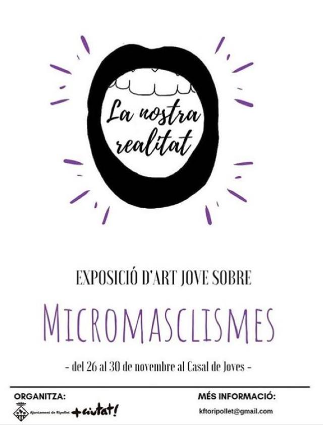 A més, són joves els autors i autores de les obres que conformaran l'exposició 'Micromasclismes', que pretén visibilitzar i denunciar el masclisme quotidià que sovint passa desapercebut. Comptarà amb diverses expressions plàstiques i audiovisuals. Els nois i noies interessats a participar-hi poden contactar amb el Casal de Joves i presentar les obres abans del 20 de novembre. La mostra serà exposada del 26 al 30 de novembre al mateix Casal de Joves i està previst que faci itinerància per diferents instituts de la ciutat.