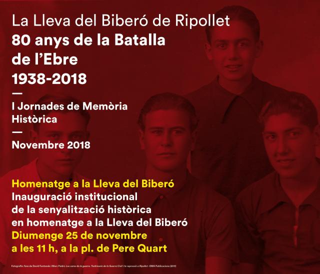 L'acte de cloenda de les I Jornades de Memòria Històrica de Ripollet tindrà lloc el pròxim diumenge, 25 de novembre, a les 11 h, a la plaça de Pere Quart. Es tracta d'un homenatge a la Lleva del Biberó de Ripollet, amb la inauguració institucional d'una senyalització històrica ubicada a l'espai on va viure Sever Bigas, uns dels 81 "Biberons" que van ser cridats al front al final de la Guerra Civil.
