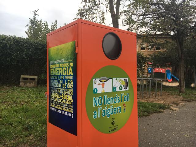 A principi de novembre es van instal·lar, a diferents punts del municipi, cinc contenidors per a la recollida de l'oli domèstic. Per tal de facilitar l'emmagatzematge de l'oli usat en ampolles per al seu posterior reciclatge, avui, es comencen a repartir un total de 1.100 embuts amb tapa i adaptador per a ampolles amb rosca. Aquest és un dels projectes dels pressupostos participatius aprovats el 2017, a proposta dels alumnes de 4t d'ESO. Aquest oli serà transformat i reutilitzat en biodièsel a través del conveni signat amb la Fundació Asproseat, que ocupa persones amb discapacitat. El cost d'aquest projecte és d'un total de 4.182.