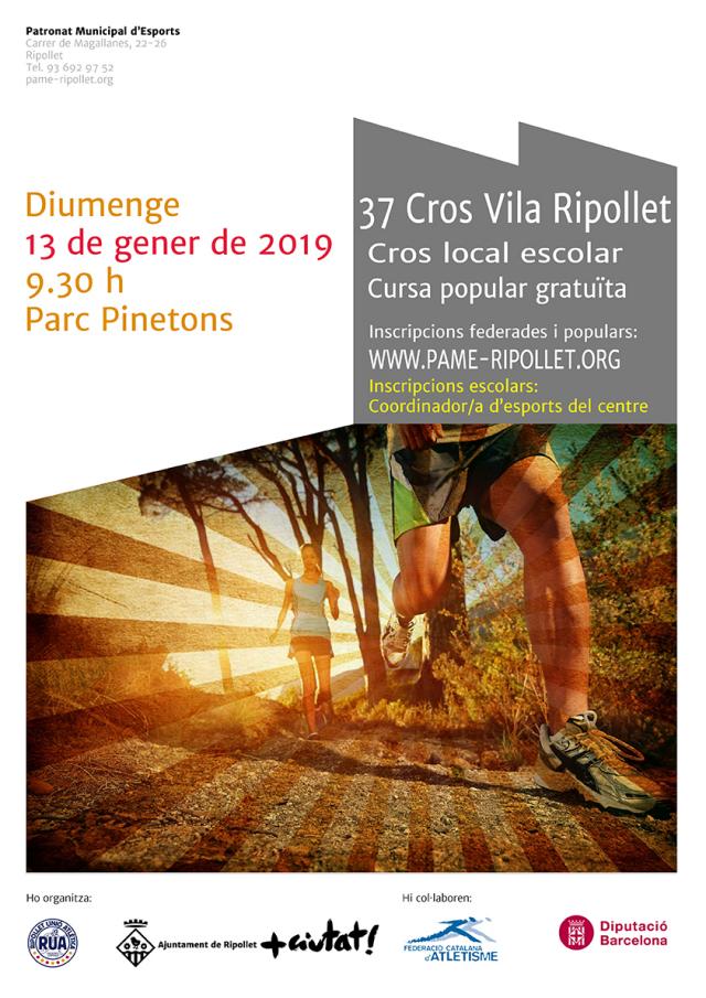 Aquest diumenge, 13 de gener, arriba la 37a edició del Cros Vila de Ripollet i Cros Escolar, a partir de les 9.30 h al parc dels Pinetons. Aquesta cursa de camp a través, torna de la mà del Patronat d'Esports i Ripollet Unió Atlètica (RUA). A més, com d'altres anys, a banda de l'opció competitiva, la quitxalla es podrà apuntar a la categoria "barrufets", una cursa divertida i familiar, sense classificacions.