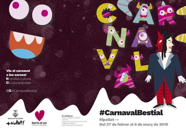 Les regidories de Cultura i Patrimoni han presentat aquest dijous el programa del Carnaval 2019, que sota el lema #CarnavalBestial protagonitzarà l'agenda cultural local del 27 de febrer al 6 de març. Com a principals novetats, el regidor de Cultura, Oriol Mor i el de Patrimoni i Memòria Històrica, David Fontanals, han destacat la tornada a l'itinerari tradicional, el fi de festa de la rua amb els Rhythm 'n' Moyo, l'increment de les ajudes a les entitats participants i, especialment, l'estrena d'un nou Cabraboc, que s'ha encarregat al mateix autor de la Xamuskina i el Poll Foll.