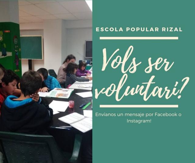 L'Escola Rizal funciona els dimecres de 17'30 a 19 h i compta amb 12 voluntaris d'entre 18 i 25 anys. Els professors funcionen en rotació, de manera que hi ha quatre professors al centre cada dimecres. Fins fa poc tenien 10 alumnes d'entre 5 i 16 anys, però s'espera ampliar aquest número fins als 13 infants. A més, hi ha la possibilitat de què els pares puguin assistir a les classes per observar. Fins ara, han rebut aportacions voluntàries en forma de material escolar.