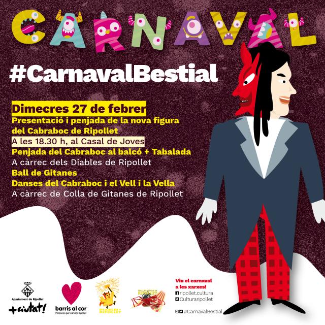 A poc a poc es van enllestint els preparatius per a l'edició del Carnaval d'aquest any. El tret de sortida tindrà lloc el dia 27 de febrer, amb la penjada del Cabraboc al balcó de Ripollet Ràdio i la Tabalada, acompanyades de les danses populars del Cabraboc i el Vell i la Vella. Un acte que organitzen els Diables de Ripollet i la Colla de Gitanes de Ripollet. La gran novetat d'enguany és la presentació del nou Cabraboc, encarregat per l'Ajuntament i que està elaborant l'artista Ramon Aumedes, al taller Sarandaca de Granollers.