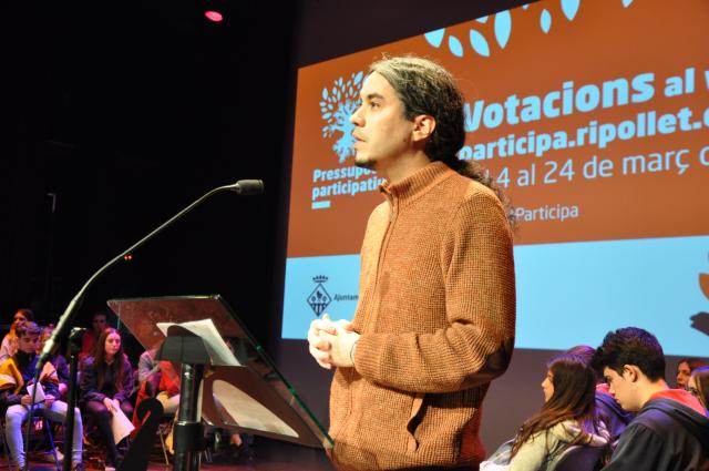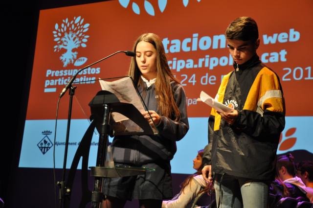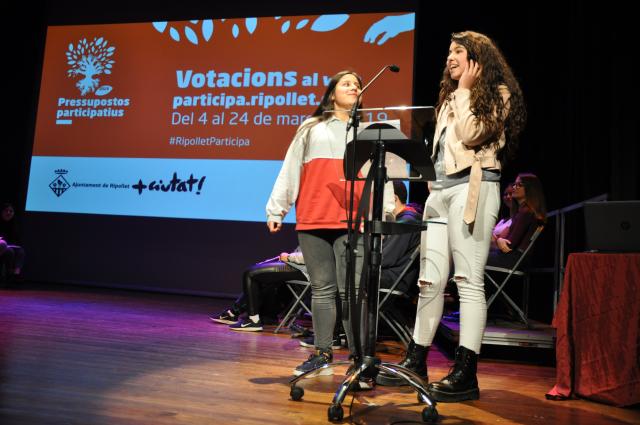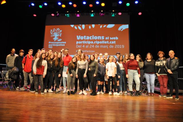 En el marc de #RipolletParticipa, més de 300 alumnes dels instituts públics i concertats de Ripollet van presentar en un acte, celebrat al Teatre Auditori del Mercat Vell, el passat 26 de març, els 13 projectes que enguany opten a la 3a edició dels Pressu- postos Participatius 2019, convocats per l'Ajuntament de Ripollet i dotats amb un total de 300.000 euros. Les propostes, que busquen la implicació dels joves en la millora de la societat i qualitat de vida de la ciutadania, han estat treballades a l'aula pels estudiants de 4t d'ESO i d'Emprenedoria de 3r d'ESO, amb el suport dels seus mestres i un equip tècnic de l'Ajuntament.