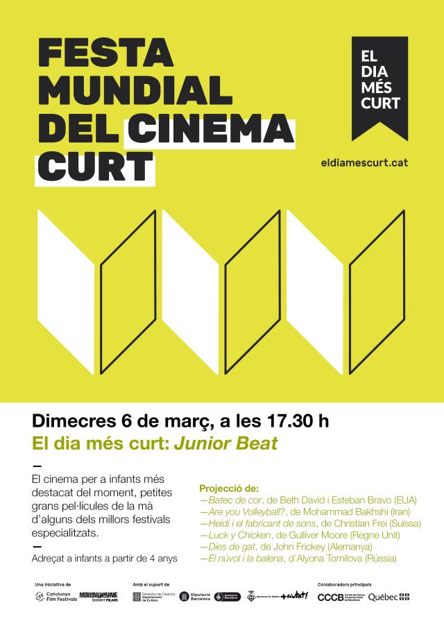 El dimecres 6 de març serà el torn pels més petits, amb la sessió 'Junior Beat' on es projectaran sis curtmetratges que parlen de l'amor, el medi ambient, els drets humans o l'esport. El dilluns 25, dins la sessió 'Perles del Québec', dedicada a adults, es projectaran una selecció de set curts programats pel REGARD, Festival International du Court Métrage au Saguenay. Una mostra rodona per viatjar i descobrir l'excel·lent estat de forma del cinema curt quebequès.