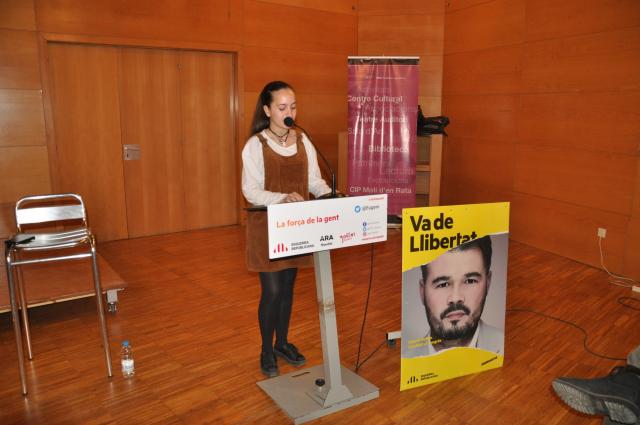 En la seva intervenció, Alba Vergés va explicar el lema de la campanya electoral d'ERC: "Va de llibertat va de la llibertat de tots i totes perquè les persones es puguin desenvolupar en llibertat". També va comentar que en veure la imatge de Neus Català a la façana del Casal de Joves havia pensat en Oriol Junqueras, que "té l'honor de ser pres polític" i que "igual que Neus Català aguanta la mirada als repressors. Mai trobarem la renúncia en els ulls de l'Oriol, com tampoc els vam trobar en els de Neus Català". Finalment, va reflexionar sobre el PSC, a qui va qualificar de "perill real", perquè "pot obrir el pas a Ciutadans, que és la dreta disfressada".