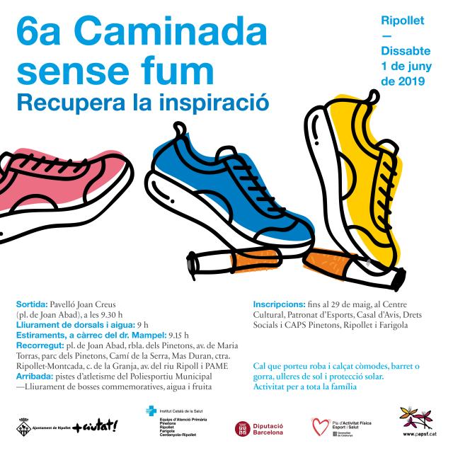 La Caminada sense fum s'emmarca dins del Programa d'Atenció Primària sense Fum (www.paspf.cat) i el Pla d'Activitat Física, Esport i Salut de la Generalitat de Catalunya (www.pafes.cat) i està organitzada per l'Ajuntament de Ripollet i el personal mèdic i d'infermeria dels centres d'atenció primària de Ripollet, amb el suport de la Diputació de Barcelona.