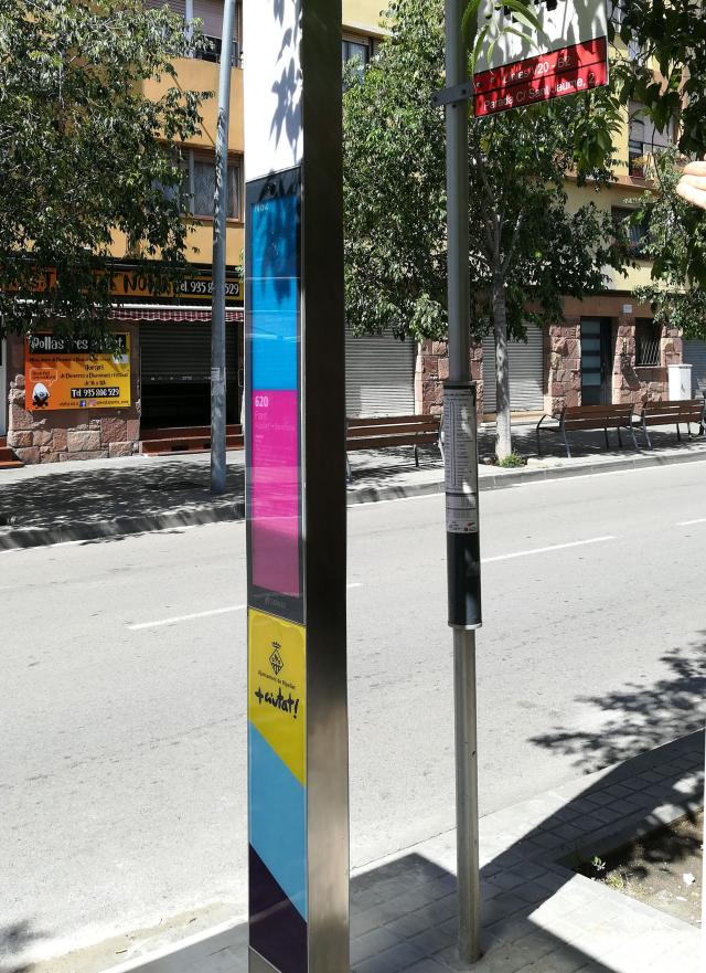 En aquests pals es pot consultar la informació de parades i horaris de les diferents línies que hi paren. La instal·lació s'ha realitzat a través d'una adjudicació a l'empresa Capmar, per un import de 16.734,30 € (IVA inclòs). Amb un disseny modern, els pals són d'acer inoxidable i estan retolats amb l'escut de l'Ajuntament i els colors de la bandera de la ciutat.