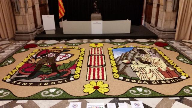 Ripollet Cultura i Tradició porta les catifes de flors al Palau de la Generalitat
